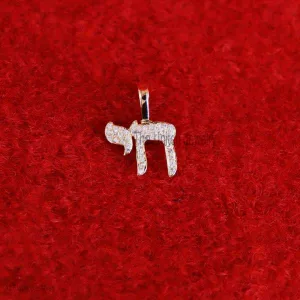 Small Mini Chai Hebrew Diamond Pendant 14k, 14k Gold Chai Hebrew Necklace, Chai Hebrew Charms, 14k Gold Diamond Chai Hebrew Charms