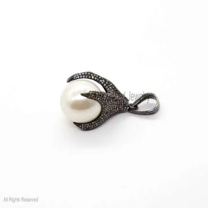 Sterling Silver Diamond Eagle Foot Pearl Charm Pendant, Eagle Foot Charm Pendant, Pearl Gemstone Charms Necklace