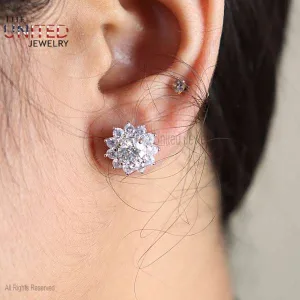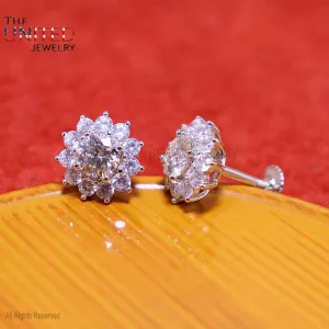 Sterling Silver Diamond Stud Earrings, Diamond Stud Earrings, Silver Stud Earrings, Handmade Diamond Silver Stud Earrings For Women’s