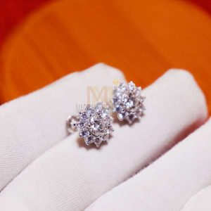 Sterling Silver Diamond Stud Earrings, Diamond Stud Earrings, Silver Stud Earrings, Handmade Diamond Silver Stud Earrings For Women’s