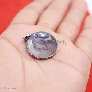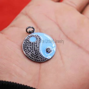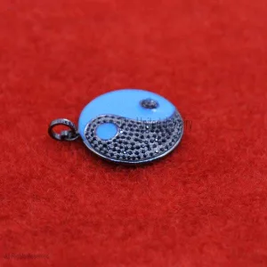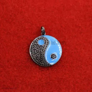 Sterling Silver Enamel Ying Yang Black Onyx Pendant Jewelry, Silver Round Disc Ying Yang Pendant Jewelry