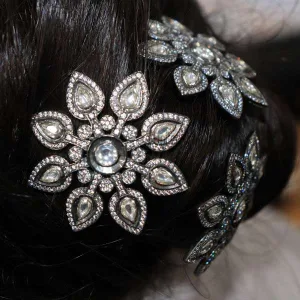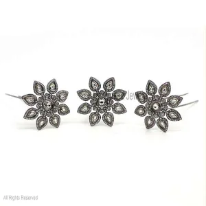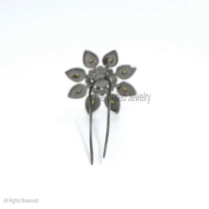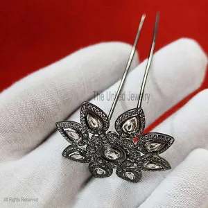 Sterling Silver Flower Diamond Hair Pin Jewelry, Hair Pin Lock, Silver Hair Pin Finding Jewelry