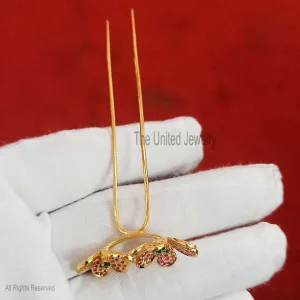 Sterling Silver Flower Tsavorite with Ruby Gemstone Hair Pin Jewelry, Hair Pin Lock, Silver Hair Pin Finding Jewelry
