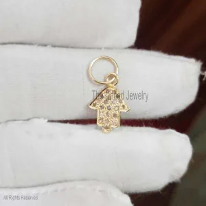 Sterling Silver Hamsa Charm Pendant, Charm Pendant, Diamond Hamsa Charms Necklace, Silver Pendant, Diamond Pendant