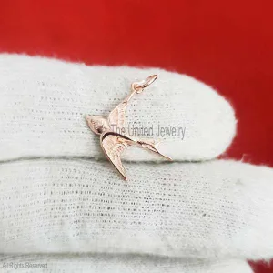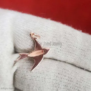 Sterling Silver Handmade Flying Bird Charm, Sterling Silver Flying Bird Charm Jewelry, Yellow Gold Plating Flying Bird Charm Pendant