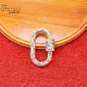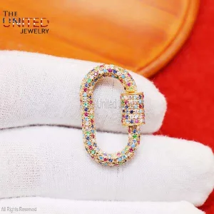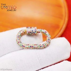 925 Sterling Silver Multisapphire Carabiner Screw Barrel Lock Jewelry, Designer Carabiner Clasp Lock