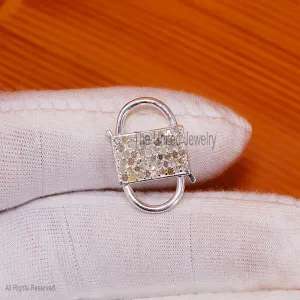 Sterling Silver Natural Pave Diamond Padlock Jewelry, Diamond Padlock, Silver Padlock Jewelry, Diamond Handmade Padlock Jewelry