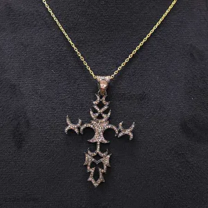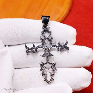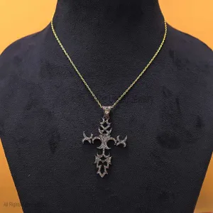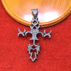 Sterling Silver Pave Diamond Designer Cross Pendant Jewelry, Silver Designer Pendant, Diamond Designer Pendant, Handmade Diamond Pendant