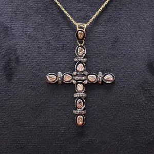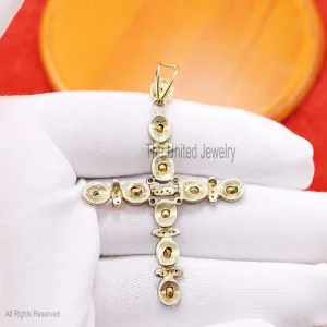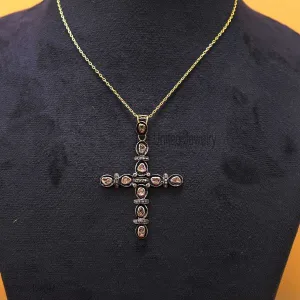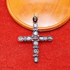 Sterling Silver Pave Diamond Polki Designer Cross Pendant Jewelry, Silver Designer Pendant, Diamond Designer Pendant, Handmade Diamond Pendant