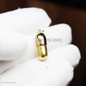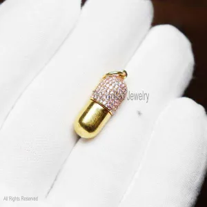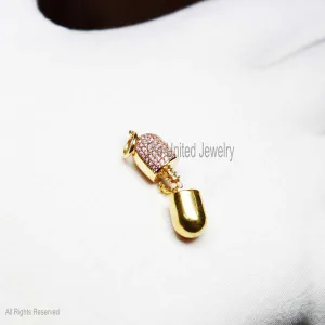 Sterling Silver Ruby Diamond Capsule Shape Charm Pendant, Capsule Charm Pendant, Gemstone Charms Necklace