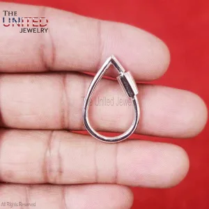 Sterling Silver with 925 Stamp Carabiner Clasp Pear Shape Lock , Silver Screw Necklace Bracelet Holder Clasp Lock, Necklace Lock Jewelry