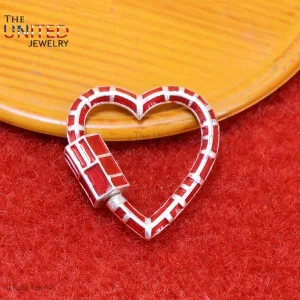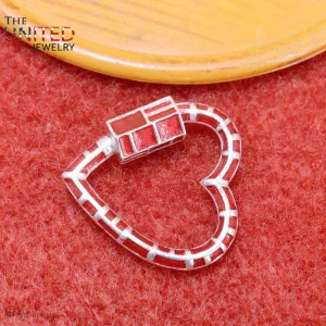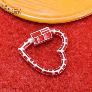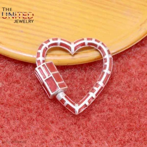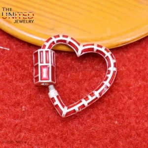 Sterling Silver with 925 Stamp Enamel Heart Shape Carabiner Clasp Lock Jewelry, Silver Screw Enamel Clasp Lock, Handmade Clasp Lock Jewelry
