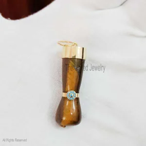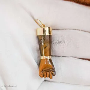 Tiger Eye Figa Pendant 925 Sterling Silver Turquoise Gemstone Figa Hand Symbol Pendant, Gemstone Figa Pendant Jewelry