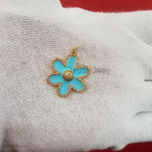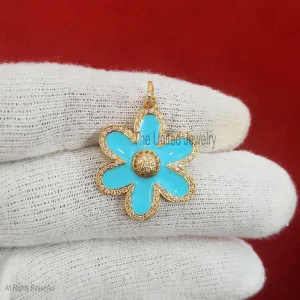 Turquoise Enamel CZ Flower Pendant Jewelry, Silver Handmade Designer Flower Pendant Jewelry