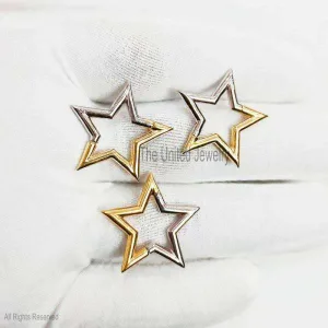 Two Tone Plating Star Shape Charms Holder, Silver Charms Holder Lock, 925 Silver Push Lock, Silver Enhancer Jewelry, Charm Holder Pendant