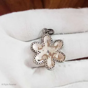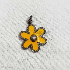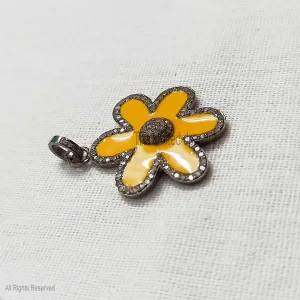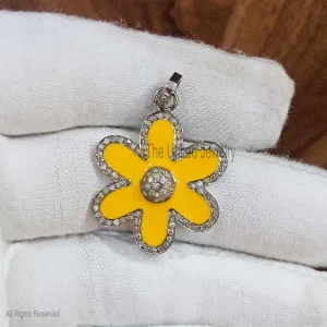 Yellow Enamel CZ Flower Pendant Jewelry, Silver Handmade Designer Flower Pendant Jewelry
