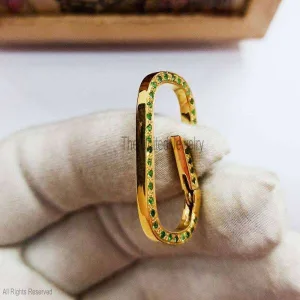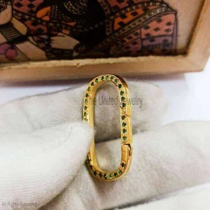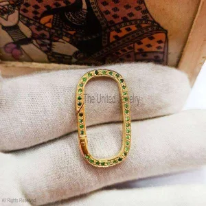Yellow Gold Plating 925 Sterling Silver Pave Tsavorite Charm Holder Lock, Handmade Sterling Silver Tsavorite Oval Shape Enhancer Charm Holder Jewelry