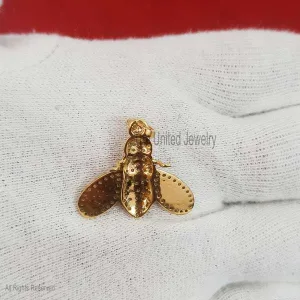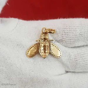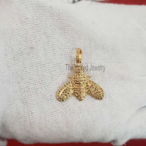 Yellow Gold Plating Diamond Bee Charms Pendant, Silver Pave Diamond Bee Charms Pendant Jewelry, Silver Bee Charms Jewelry