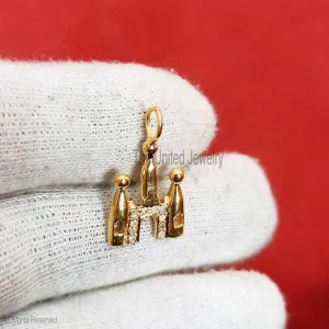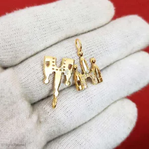 Yellow Gold Plating Pave Diamond Castle Design Charm Pendant, 925 Sterling Silver Jewelry, Sterling Silver Diamond Charms Jewelry