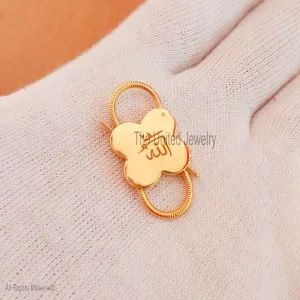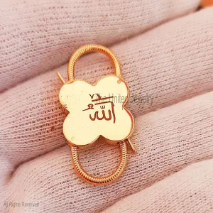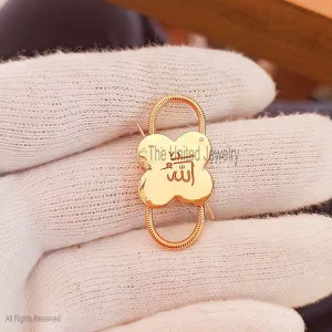 Yellow Gold Plating Sterling Silver Clover Shape Allah Arabic Engraving Padlock, Allah Arabic Engraved Padlock, Silver Padlock Jewelry