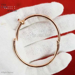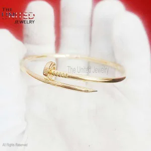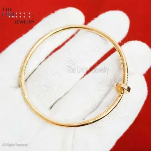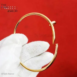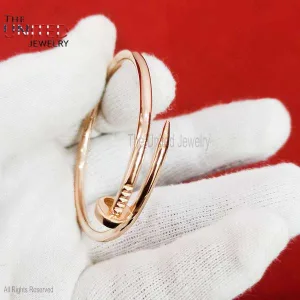 Yellow Gold Plating Sterling Silver Handmade Cartier Style Nail Bangle, Silver Nail Bangle Jewelry, Silver Nail Bangle For Women’s